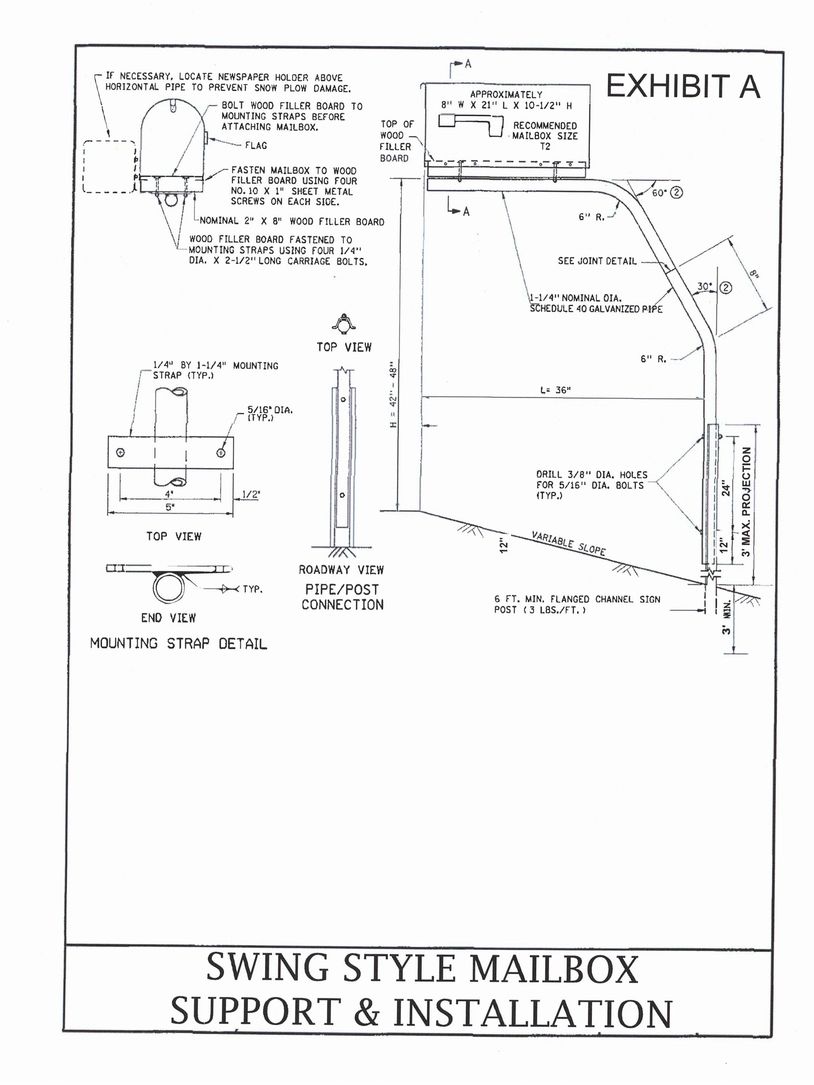 It is the policy of Orrock Township that the standard construction for supporting mailboxes is to be the swing-away mailbox support.
