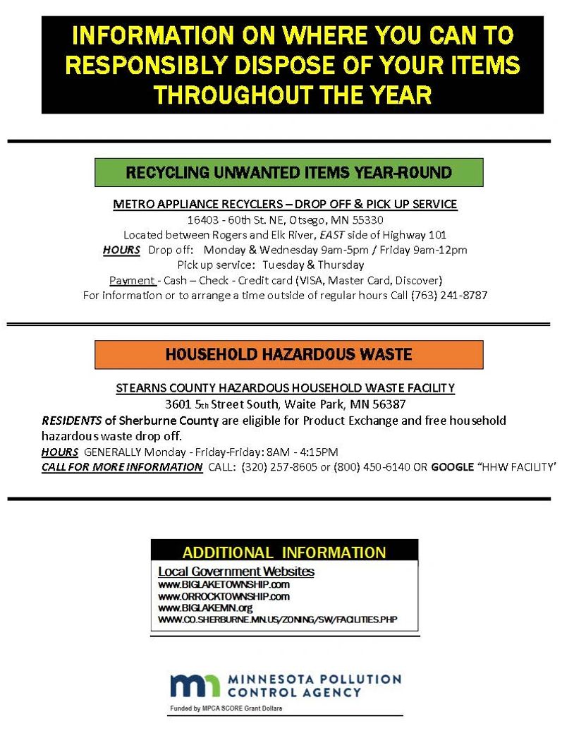 Residents of Sherburne County may dispose of their HHW, free of charge at collection events.